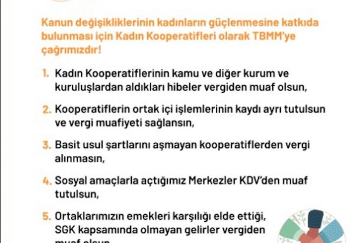 Sivil Sayfalar 18 Ekim 2021 Aralarında Kadın Emeğini Değerlendirme Vakfı’nın (KEDV) da olduğu 134 kadın kooperatifi, Kooperatifler Kanunu ve Vergi Usul Kanununda değişiklik yapılmasıyla ilgili kanun tekliflerinde istedikleri önerileri içeren dilekçelerle Mecliste çağrıda bulundu. Türkiye’nin çeşitli bölgelerinde 134 kadın kooperatifi ...