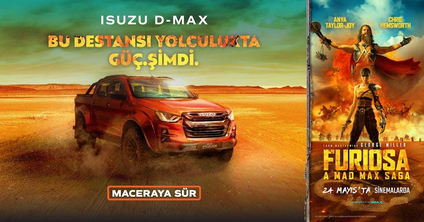 Anadolu Isuzu, efsane pick-up’ı Isuzu D-Max ile post-apokaliptik filmlerin kült serisi Mad Max’in beşinci filmi “Furiosa: Bir Mad Max Destanı” ile iş birliği yapıyor. İş birliği kapsamında 24 Mayıs tarihinde TME Films / Warner Bros. ile Türkiye’de vizyona girecek filmin iletişim sponsorluğunu Isuzu D-Max üstleniyor. Furiosa, George Miller tarafından yönetilen ve Anya Taylor-Joy’un Furiosa karakterini canlandırdığı, bir Avustralya kıyamet sonrası aksiyon macera filmi. Furiosa’nın dünya prömiyeri 77. Cannes Film Festivali’nde yapılmış ve 6 dakika boyunca ayakta alkışlanmıştı.