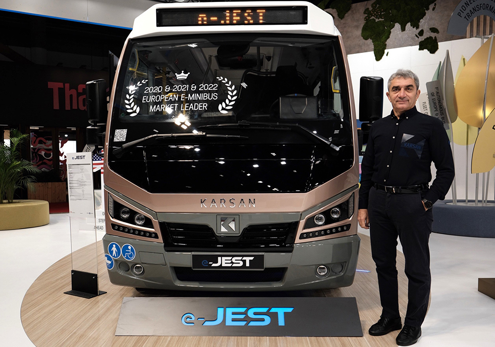 Karsan, tamamlanan yüzde 100 elektrikli ürün gamı ve dikkat çeken büyüme performansı ile fuarın en ilgi çeken markalarından olan Karsan’ın CEO’su Okan Baş, “Ana hedef pazarımız olan Avrupa’da, büyümeye aralıksız devam ediyoruz. Yüzde 100 elektrikli e-JEST ve e-ATAK ile 2022 yılını Avrupa’da lider olarak kapatmıştık. 2023 yılının ilk yarısında da yükselişimiz devam etti. Yılın ilk yarısında Karsan elektrikli araçları ile Avrupa şehir içi elektrikli toplu ulaşım pazarında payımızı artırarak yüzde 6,7 seviyesine ulaşarak pazarda 4. sırada yer aldık. 3 yıldır Avrupa elektrikli minibüs pazarının lideri olan e-JEST, bu yılın ilk yarısında da yüzde 24 pazar payı elde ederek, liderliğini sürdürüyor.