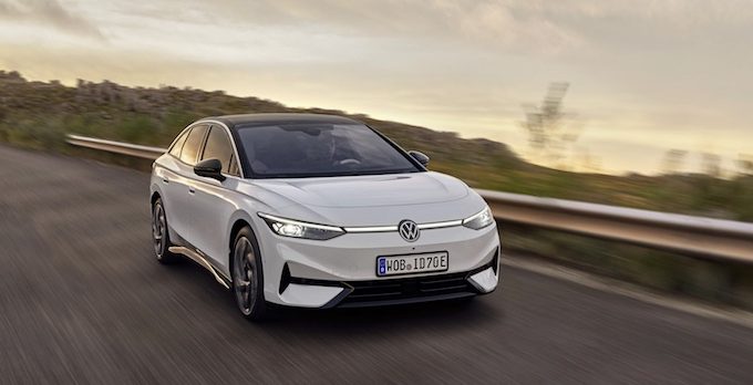 Üst orta sınıftaki ilk tamamen elektrikli Volkswagen modeli olan ID.7 tanıtıldı. Yeni ve daha verimli güç-aktarma neslinin üstün aerodinamiyle birleşimi, modele 700 km’ye kadar menzil sağlıyor. Yeni ekran ve kullanım konseptine sahip ilk Volkswagen olma özelliğine sahip ID.7’de sunulan yeni klima, masaj işlevli “Climatronic” özellikli koltuklar ve karartılabilir akıllı panoramik cam tavan gibi özellikler sıradışı bir seyahat konforu sağlıyor.